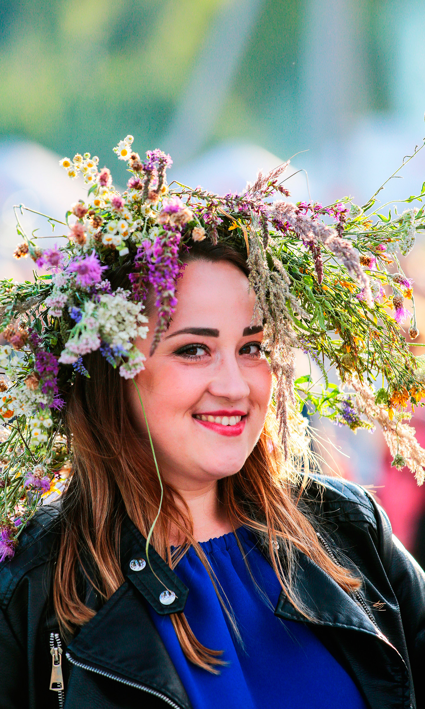 Под руководством мастеров гости фестиваля вытачивали деревянные ложки, шили куклы и обереги, плели из соломы и лепили из глины. А поскольку отдыхающие с удовольствием украшали себя купальскими венками, одними из самых посещаемых были мастер-классы по их плетению. Жанна Новик из Мостов Гродненской области знает в этом толк: