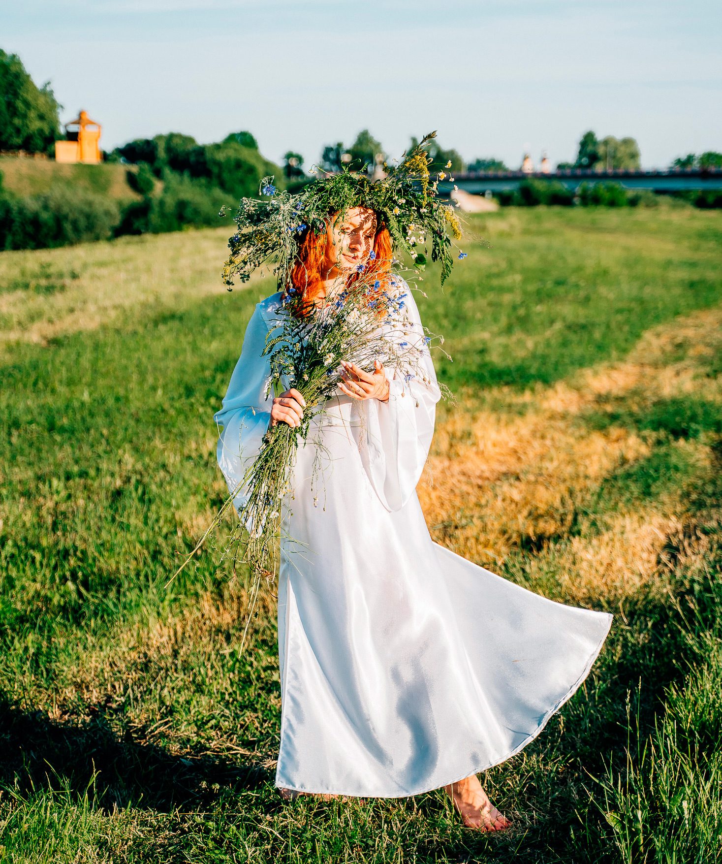— Венки на Купалье плели из того, что растет на лугу. Брали ромашки — символ чистоты и невинности, васильки — традиционный для Беларуси цветок. Нередко вплетали злаковые культуры, тот же лен или овес, что символизировало достаток. И ключевой момент — листья папоротника. Чтобы венок поплыл по реке и сбылось заветное желание девушки, плести его нужно, что называется, вкладывая душу.