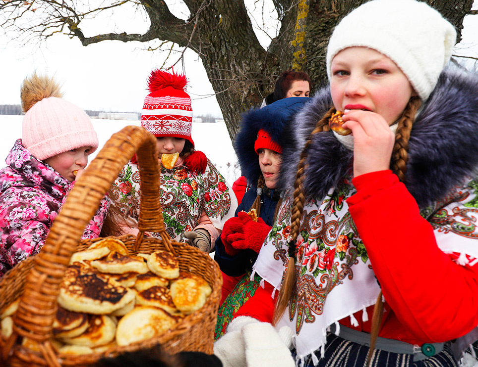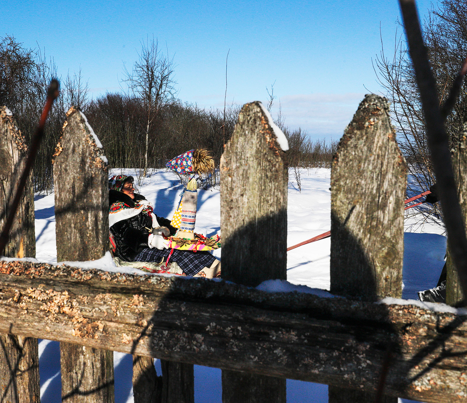 Три улицы деревни, несмотря на будний день, оживают. Малышня катается с самодельной горки, взрослые носят в здание СДК блюда на праздничный стол. Среди них - кутья, оладьи, сало, кисель, соленые огурцы. Внутри помещения суетятся участники двух фольклорных коллективов: взрослого «Радзіна» и детского «Валошкі». Кто натягивает народные костюмы, кто играет на инструментах. Здесь уже и первые зрители, которые пускаются в пляс. Жительница Борисова Раиса Яматина в Новинах впервые: