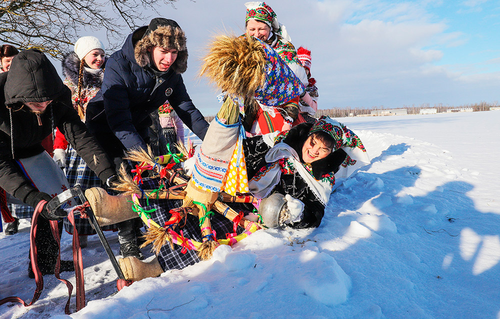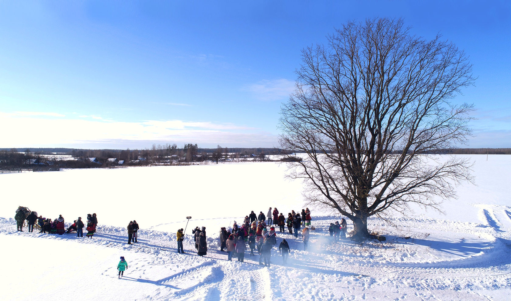 Деревня Новины - одна из немногих сохранила традицию «Тянуть Коляду на дуба». Причем дата не меняется: в мороз и оттепель, в будние и выходные 21 января работники Новинского СДК, участники взрослого и детского фольклорных коллективов и гости идут в соседнюю Мартьяновку. Там стоит дуб, с которого ежегодно сбрасывают старый сноп пшеницы и затягивают новый - на хороший урожай, крепкие семьи и рождение детей. Посмотреть на обряд съезжаются со всей Минщины. Вот и корреспонденты sb.by вместе с видеоаппаратурой и дроном отправились туда в рамках проекта «неОБЫЧАЙные деревни».
