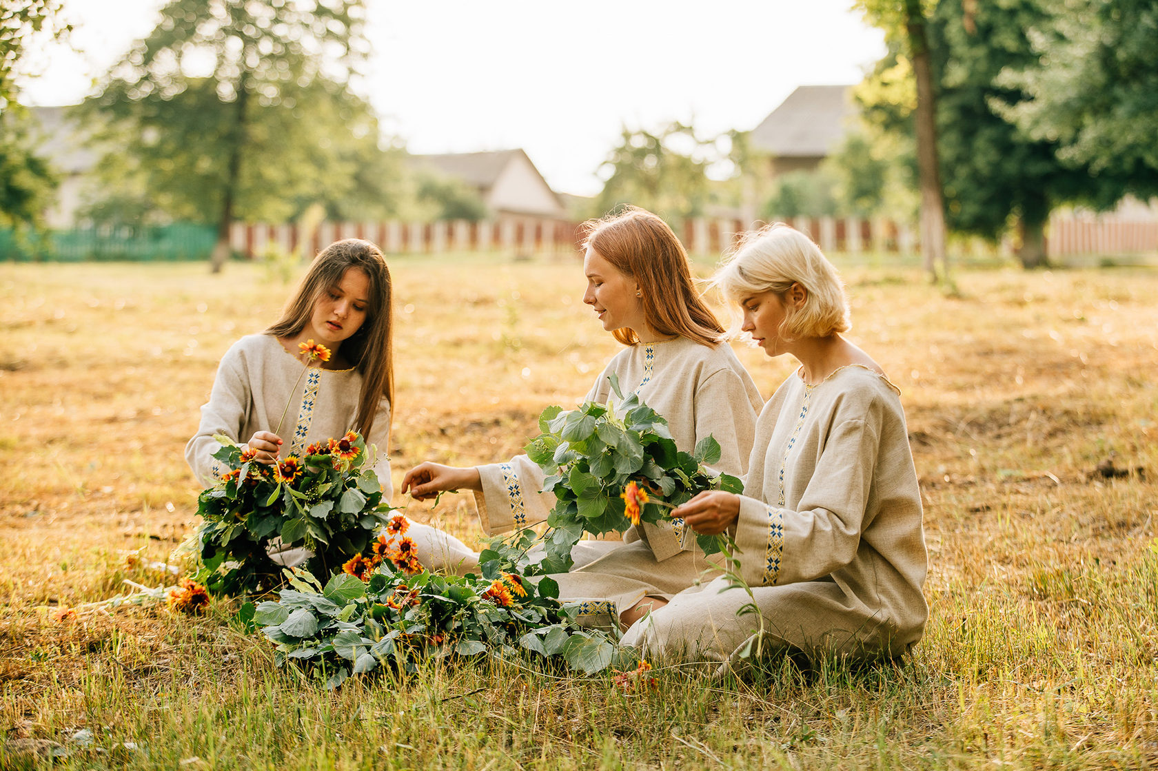 — Ветки от венка мать давала с наказом, — вспоминает Галина Хорошко, — надо было занести на огород. Огороды были далеко за хатами. Идешь, а рожь растет по одну сторону дороги и по другую. Мать приговаривала: «Смотрите, осторожно, а то выйдет русалка из жита и даст «смоловую цыцку». Как мы этого боялись! Бегом бежали через рожь к огородам.