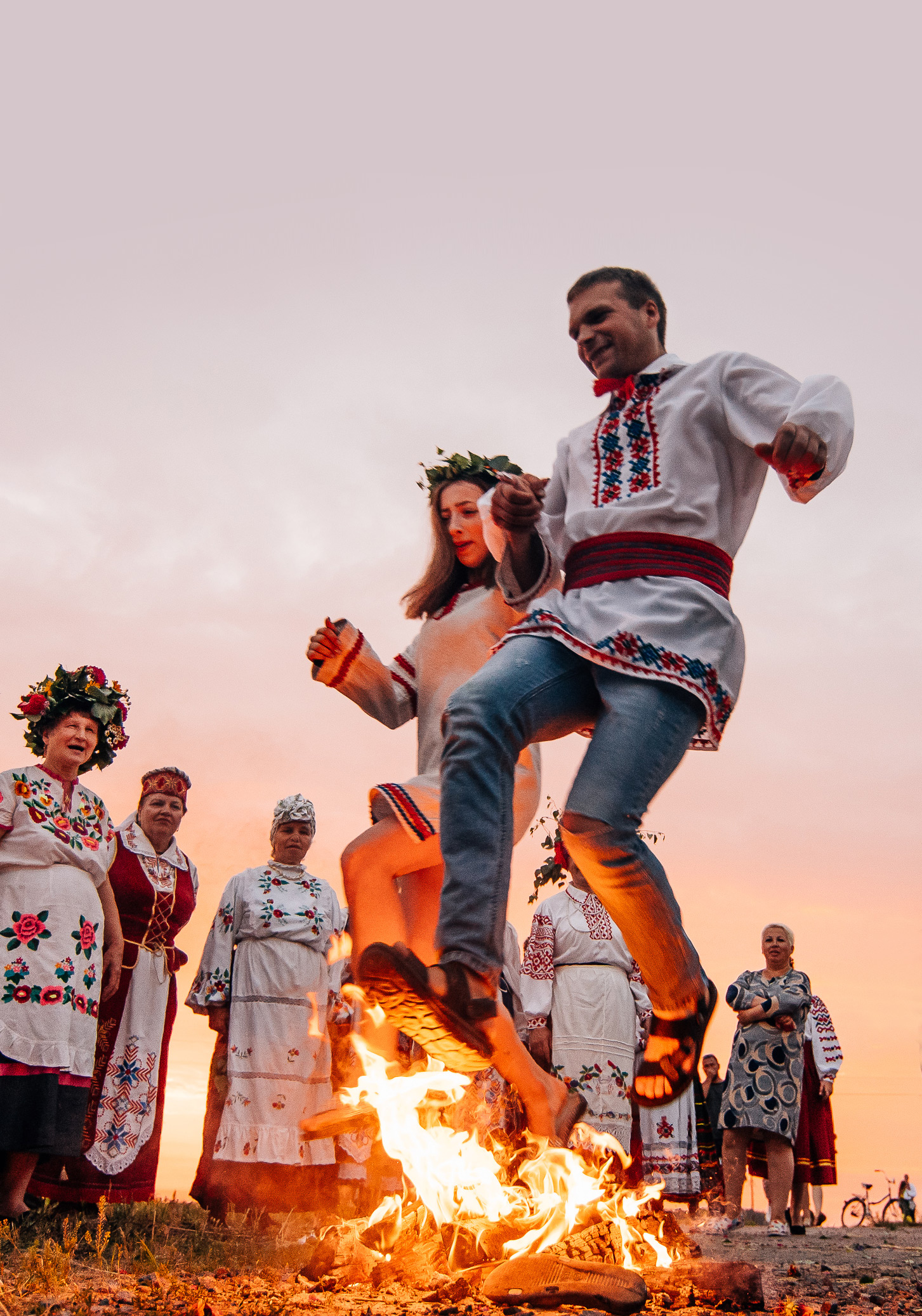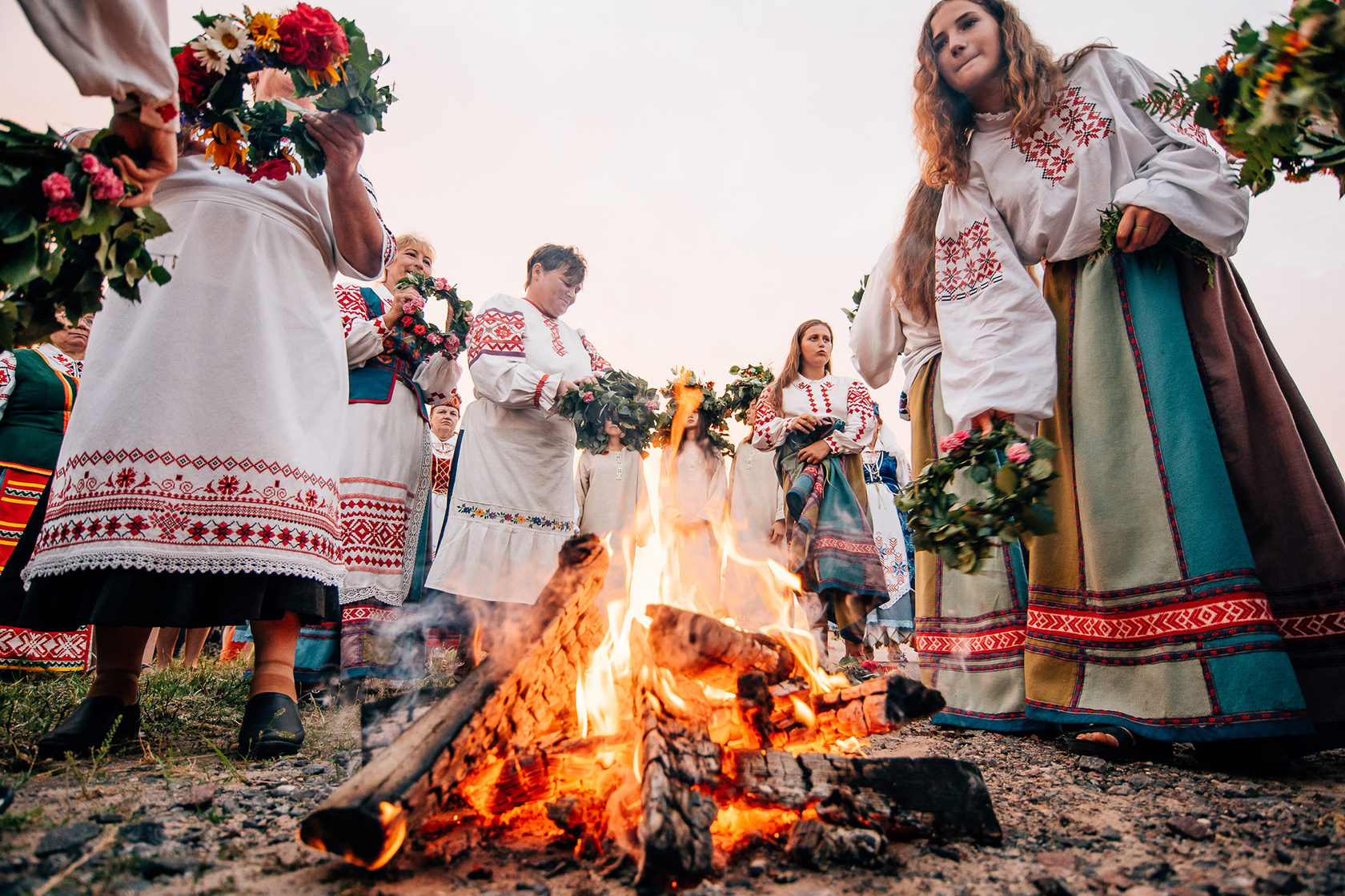 Перепрыгнуть через костер спешат и сами участники обряда: от беды и сглаза очиститься, а еще в прыжке успеть загадать сокровенное желание. Девочки молодые суженого желают, кто постарше — здоровья, дети — хорошей учебы. Каждый желает свое. Затем большой обрядовый венок разрывают на пучки. Селяне буквально бросаются на него, чтобы успеть ухватить хоть пару веточек.